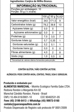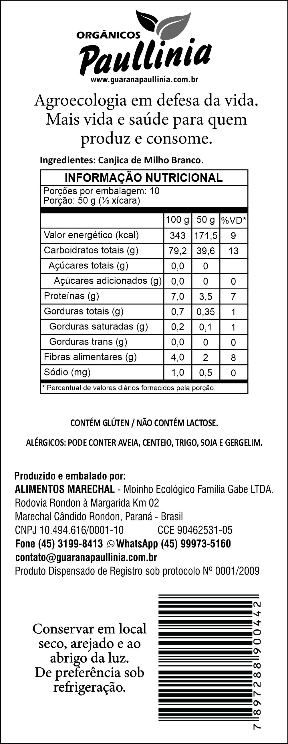 Este produto naturalmente não contém glúten, porém pode conter traços de glúten devido a contaminação cruzada.